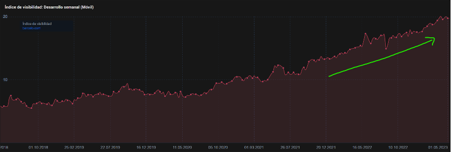 Since Barceló Hotel went live with Uberall in late 2021 the brand’s visibility via mobile search has increased significantly. Barceló Hotel Group have witnessed significant growth in their SEO ranking index from 15 to 20 since May 2022, as demonstrated by the Sisitrx graph. In contrast, some of their industry rivals have remained stagnant or even seen a decline in their SEO performance during the same period and with scores much lower, between 2.8 and 6.5.