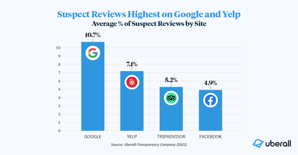 First-of-its-kind research from Uberall analyzes four million reviews on Google, Facebook, Yelp and Tripadvisor to determine comparative rates of review fraud.