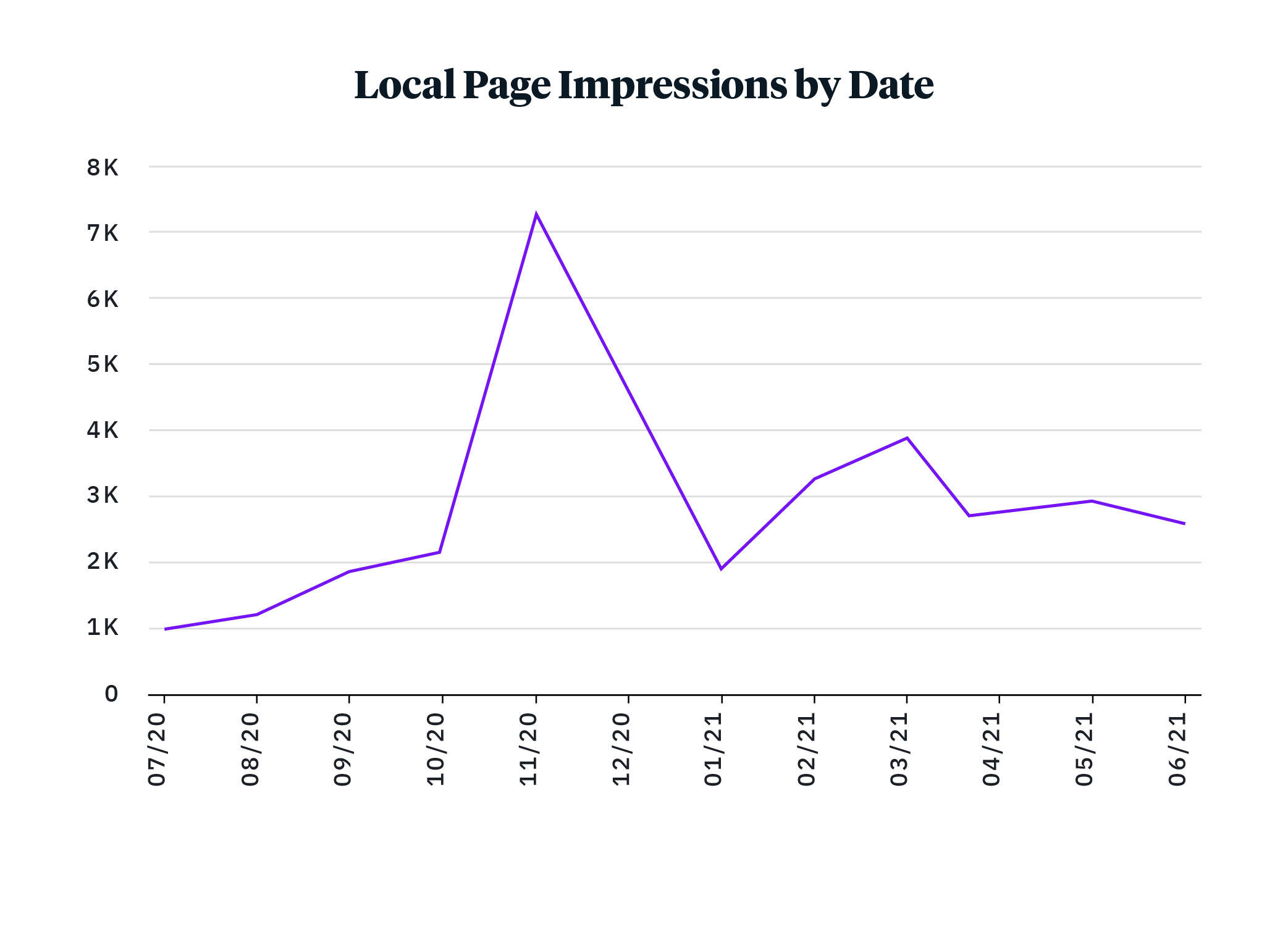 Un pic du nombre d'impressions de pages locales peut également être observé au cours de la même période. Les magasins LAKRIDS BY BÜLOW ont ainsi été exposés 235 % de plus que la moyenne entre octobre et décembre 2020.