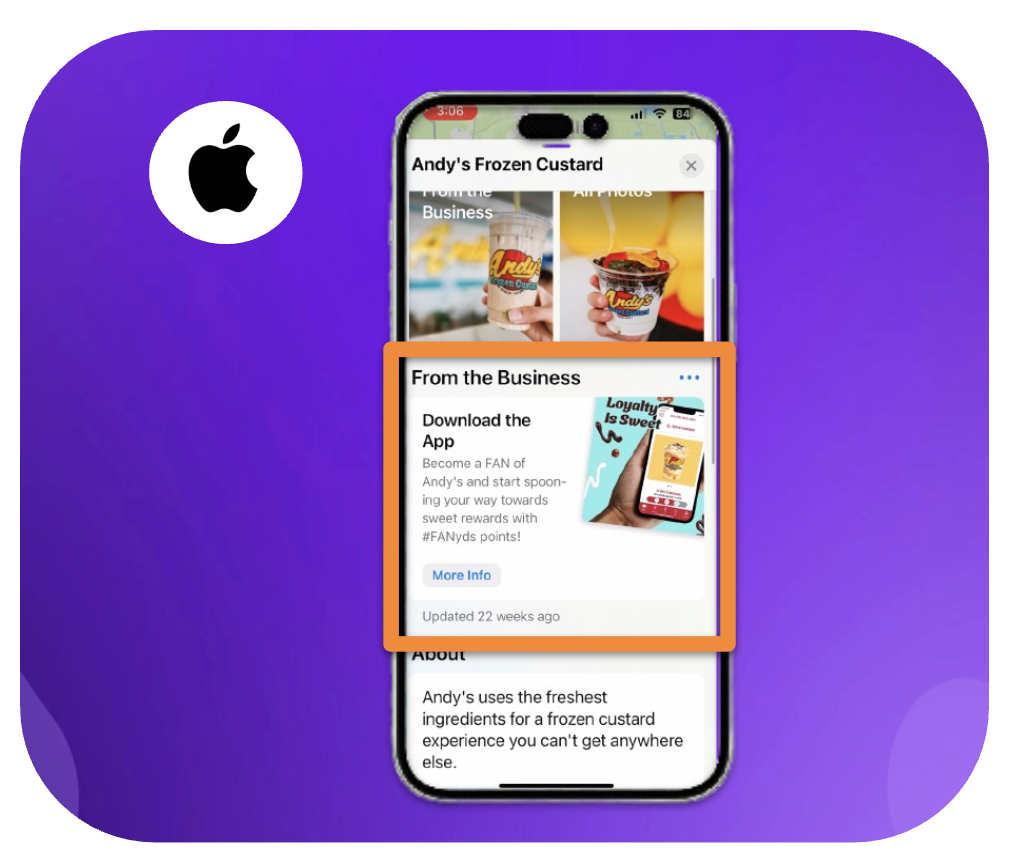 Pubblicare regolarmente su Apple Maps tramite Showcases aumenta il coinvolgimento dei clienti e stimola più azioni, dalle visite al sito Web al traffico in negozio, soprattutto per i clienti che cercano offerte locali nell'ecosistema Apple.
