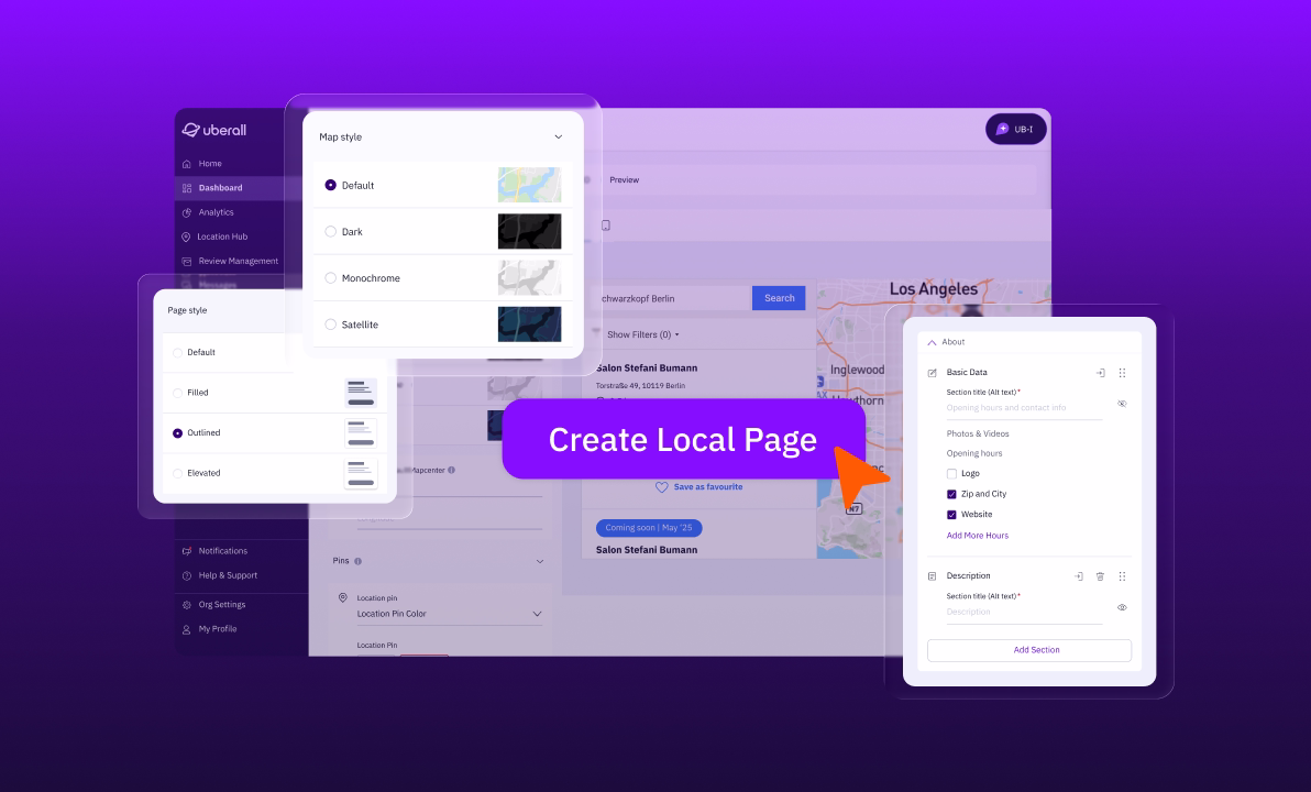 Rank higher across both AI-powered and traditional search engines. Uberall’s Local Pages are built with structured, intent-driven content and optimized for visibility everywhere your customers search.